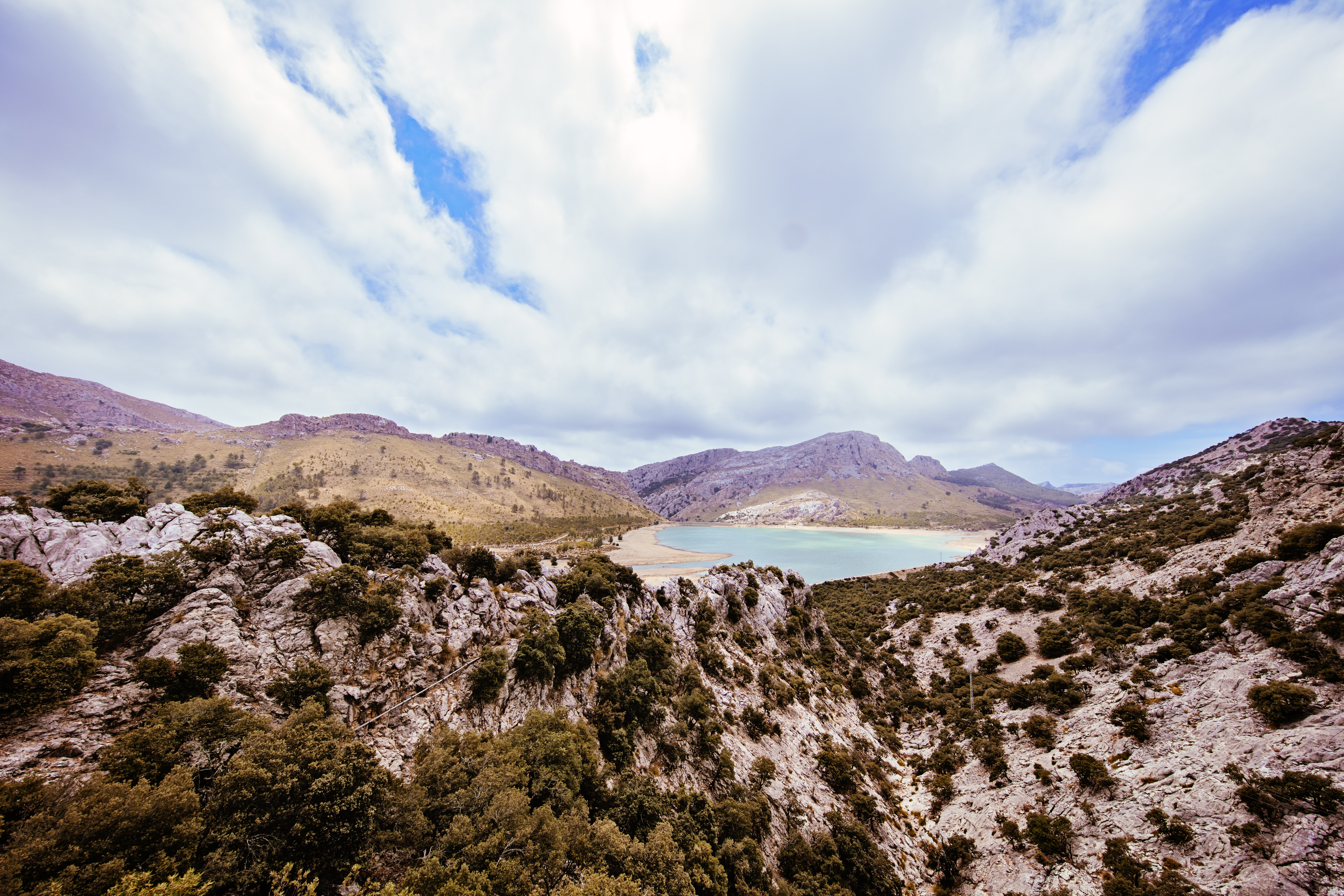 Die Serra de Tramuntana wie der Gebirgszug auf mallorquinisch heißt nimmt die gesamte Westküste Mallorcas ein und beherbergt elf Gipfel mit über 1000m Höhe. Zwischen Gipfeln Klippen und Felsküsten finden sich immer wieder einsame Strände und leere buchten die einen perfekten Spot zum Baden oder Tauchen bieten. In den flacheren Gebieten wird es im Sommer recht warm sodass man sich eher auf.