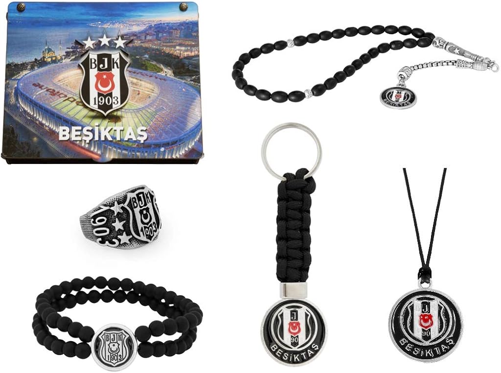 Gok Turk Geschenkbox Schmuckset Besiktas Bjk Gravur Gratis Set Aus Halskette Ring Armband Gebetskette Tesbih Schlusselanhanger Amazon De Schmuck