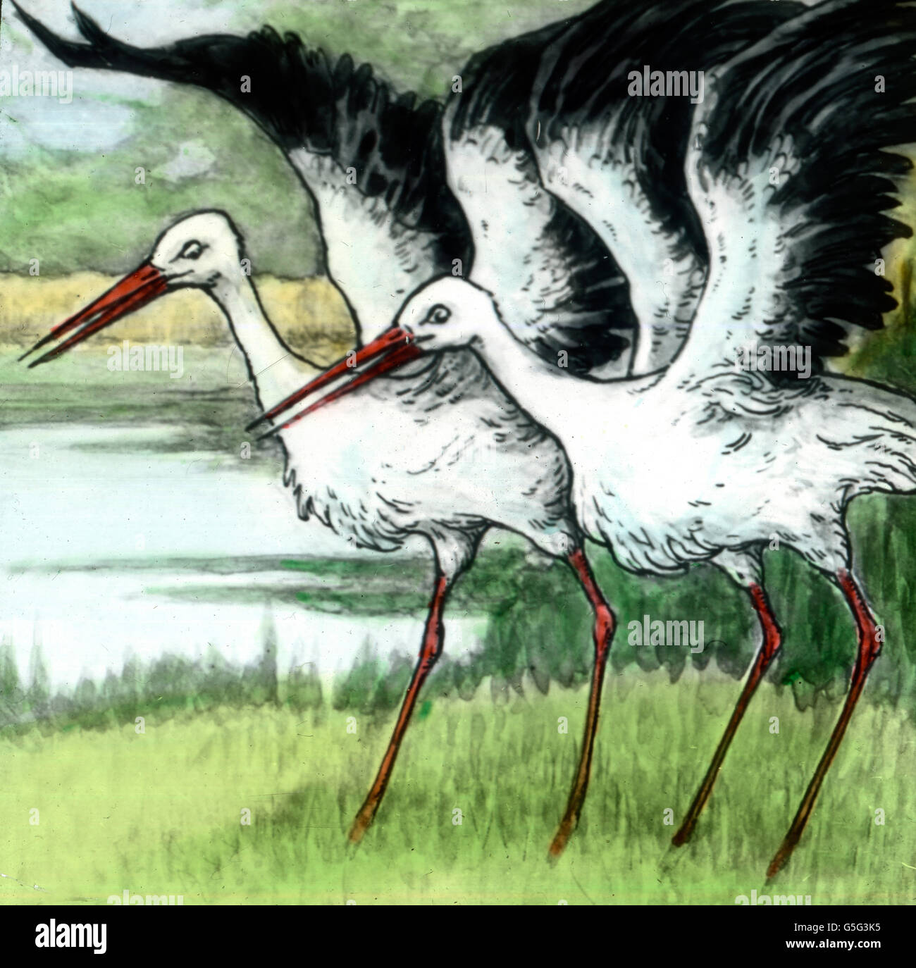 Kalif Storch Kalif Storch Geschichte Historische 1910er Jahre 1920er Jahre Des 20 Jahrhunderts Archivieren Carl Simon Hand Farbigen Glas Folie Marchen Wilhelm Hauff Legende Mythos Oriental Storch Storche Teich Natur Ausziehen