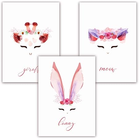 Pandawal Wanddeko Kinderzimmer Bilder Madchen Schone Wand Deko Fur Madchenzimmer Susse Tiere Mit Blumen 3er Poster Set S12 Im Din A4 Fomat Amazon De Kuche Haushalt