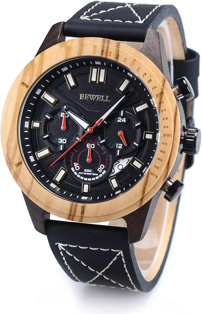 Bewell Herren Natur Holzerne Uhr Multifunktionale Quartz Analog Armbanduhr Mit Kalender Anzeige Chronograph Funktion Holzerne Armband Fur Manner Ebenholz Und Rotes Sandelholz Amazon De Uhren
