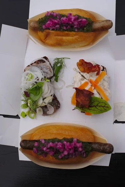 Danisches Offenes Sandwich Mit Hot Dog Danemark Kopenhagen Stock Photo 222927902