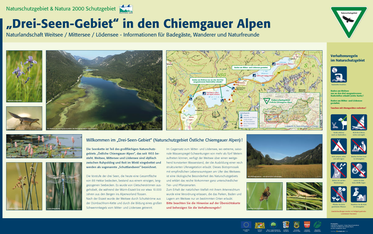 Rund um drei Seen - Rund um Lödensee Mittersee und Weitsee Rund um drei Seen Rund um Lödensee Mittersee und Weitsee Außer einem kleinen Anstieg am Dürrfeldkreuz ist die Drei-Seen-Strecke fast eben und somit in gut vier Stunden zu bewältigen. Das ganze Gebiet steht unter Naturschutz. Aufregende Gipfeleroberungen gemütliche Bergbahnen und seltene Almtiere warten auf den rund 250 Kilometer ausgezeichnete Wanderwege rund um Ruhpolding.
