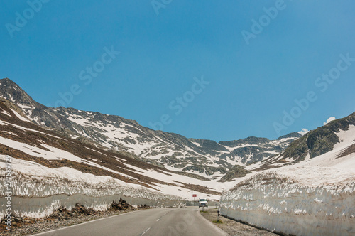 Timmelsjoch Hochalpenstrasse Bergstrasse Passstrasse Schneewand Alpen Tirol Osterreich Sommer Stock Photo Adobe Stock
