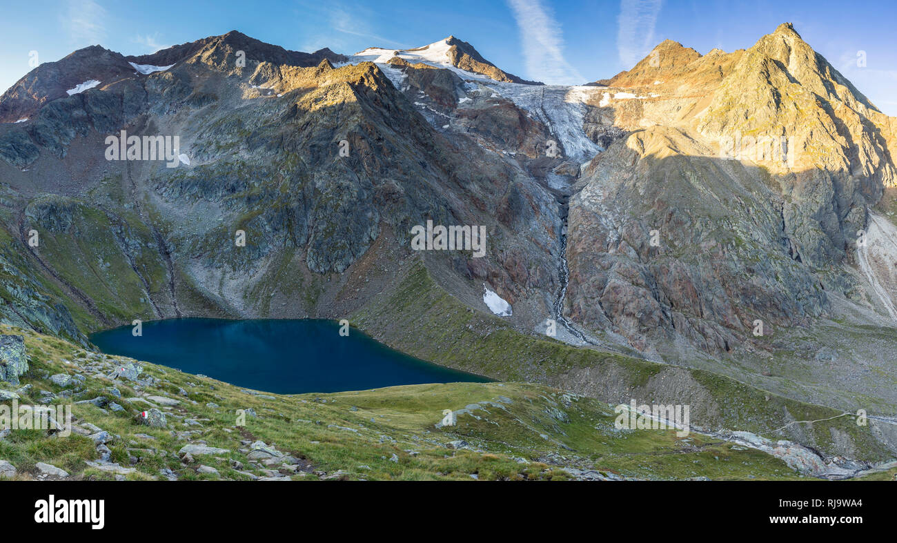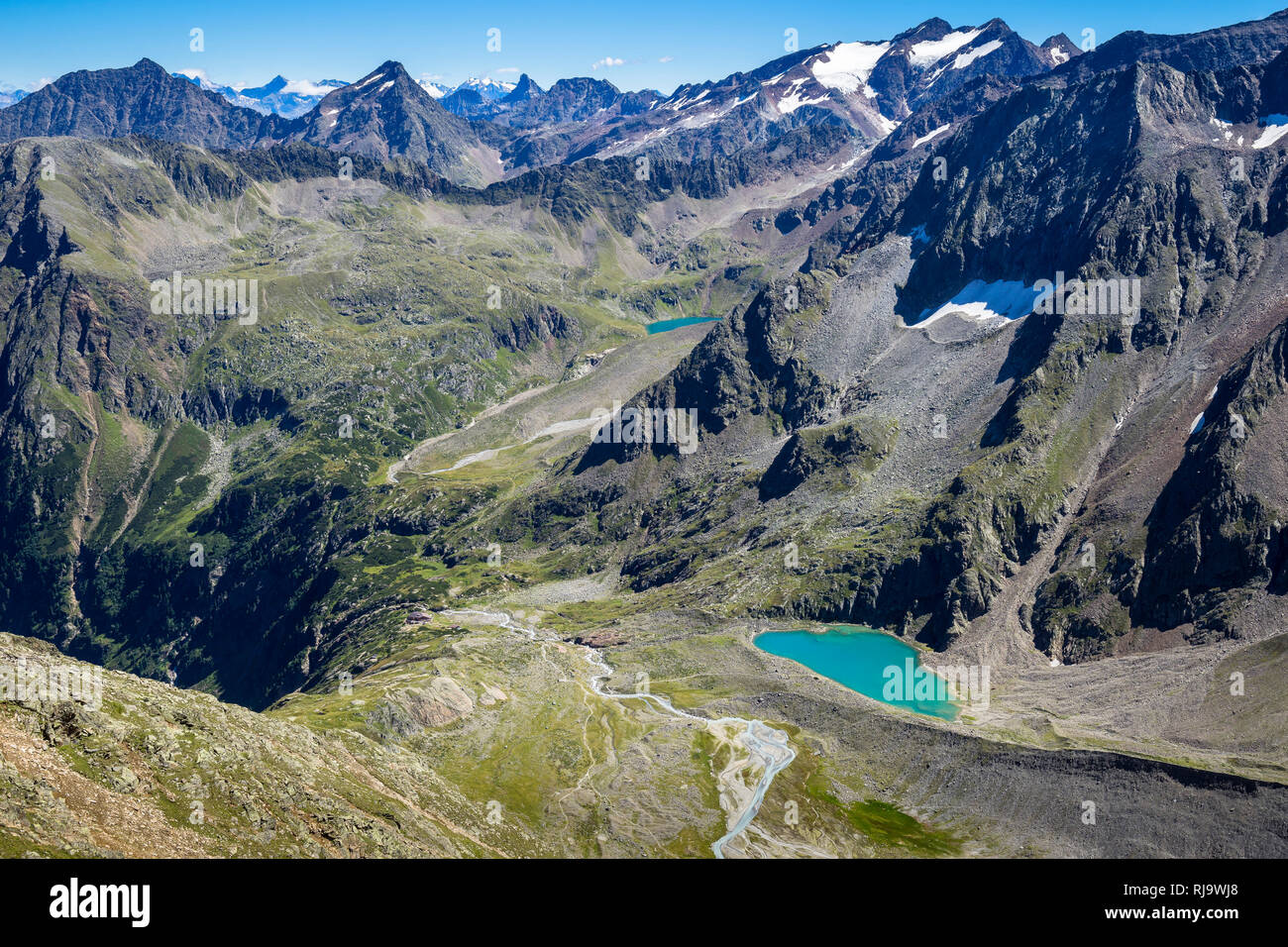 Osterreich Tirol Stubaier Alpen Neustift Panorama Mit Grunausee Und Wilder Freiger Im Sommer Stock Photo Alamy